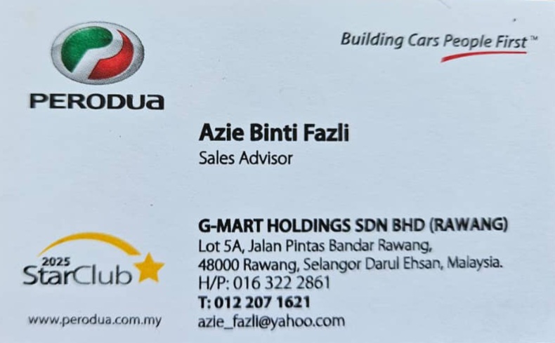 Kindly contact me at 016 - 322 2861 if you have any queries on Perodua Cars!